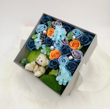 商品描述: 你悄悄說你愛我讓我緊緊靠在你胸前溫柔的言語清清撥動我的心弦世界屬於我們兩個人我們的心緊緊相連/商品介紹/花材:香皂花保質期:1-3年禮盒尺寸:32X32X16cm保存方式:請勿曝曬、避免受潮