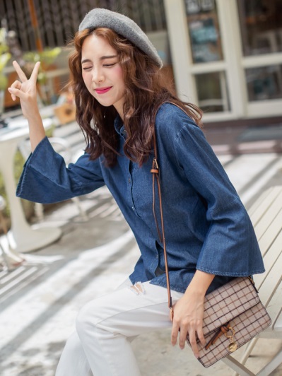 →→→→更多詳細”清新白底小碎花層次抓皺反折袖長版上衣”介紹請點我←←←←←