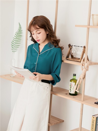 跟你推薦一個純色翻領設計落肩上衣購買的專賣店網站