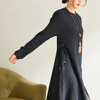 【慢。生活】豎條肌理束帶針織連衣裙 7907FREE黑色