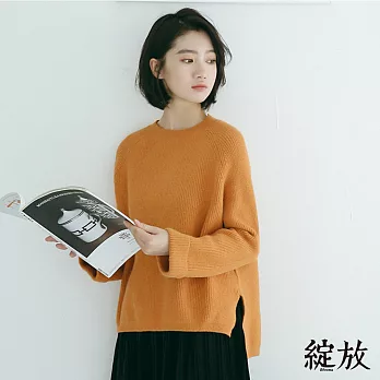 【綻放】純色百搭袖反摺毛衣-共2色-81025(F可選)F橘黃色