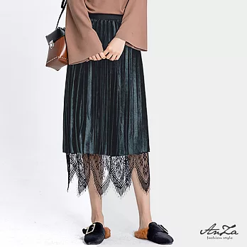 【AnZa】兩穿金絲絨蕾絲百摺裙(2色) FREE孔雀藍