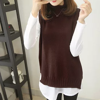 【初色】假兩件毛衣背心襯衫-共5色-92379(F可選)F酒紅色