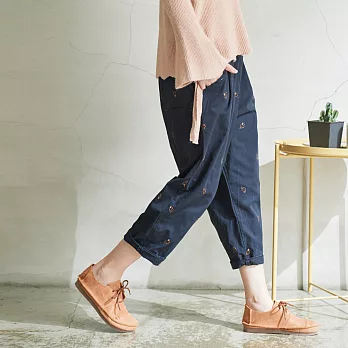 【慢。生活】鬆緊腰刺繡休閒蘿蔔褲 K5129FREE藍色