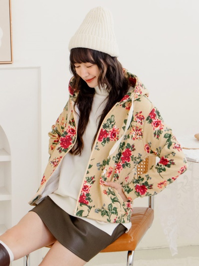 高含棉滿版花朵磨毛連帽外套
