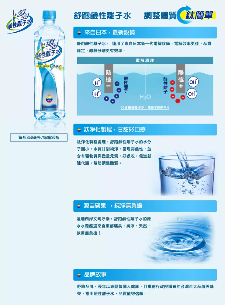 →→→→更多詳細”舒跑 鹼性離子水 850mlX20入-箱”介紹請點我
